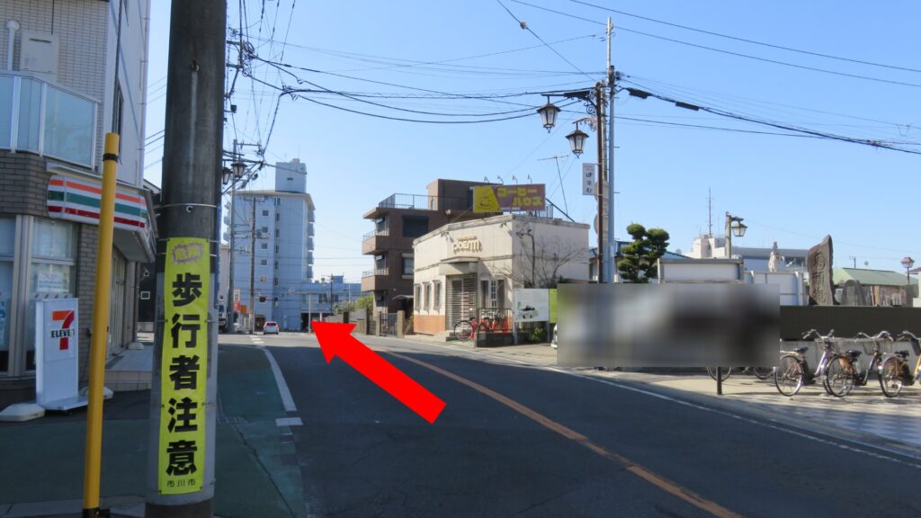 セブンイレブンのある方に進みます(踏切は渡りません)