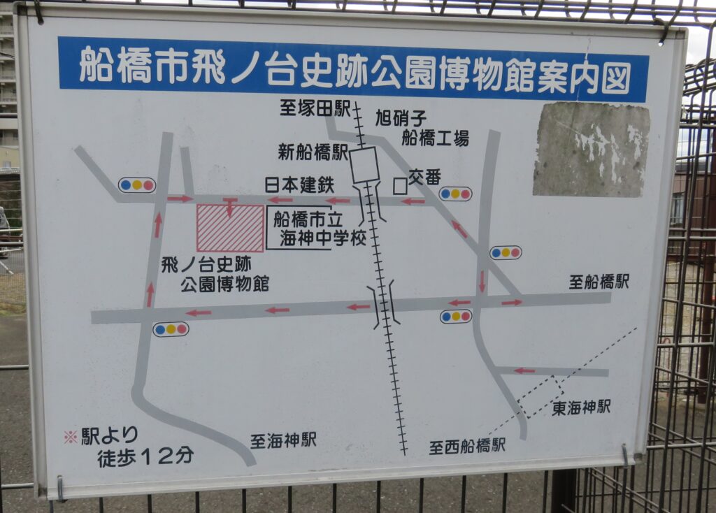 - 駅のT4出口には船橋市飛ノ台史跡公園博物館へのアクセスマップが掲示されています。なお、同施設へのアクセスは東武アーバンパークラインの新船橋駅の方が至近となります。